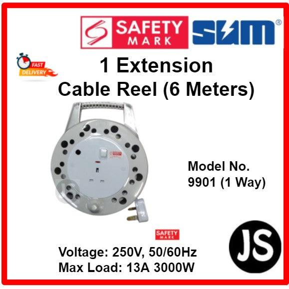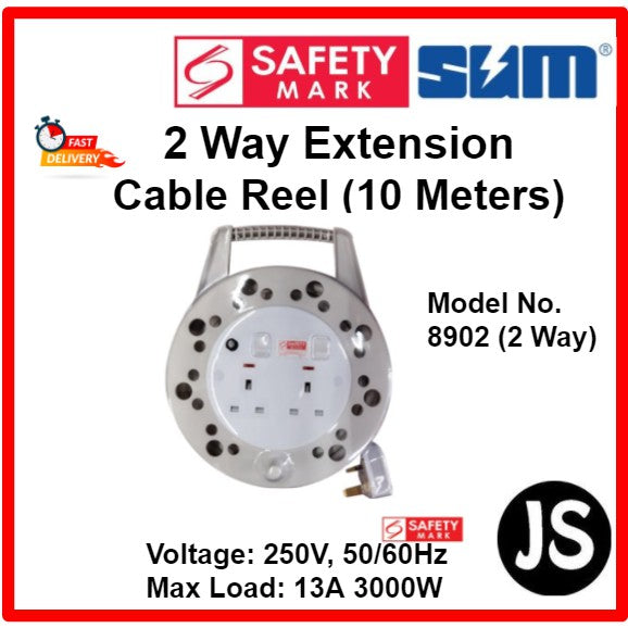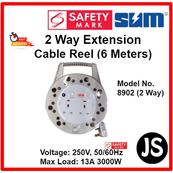 1 & 2 Way Extension Cable Reel (6 & 10 Meters) With Singapore Safety Mark