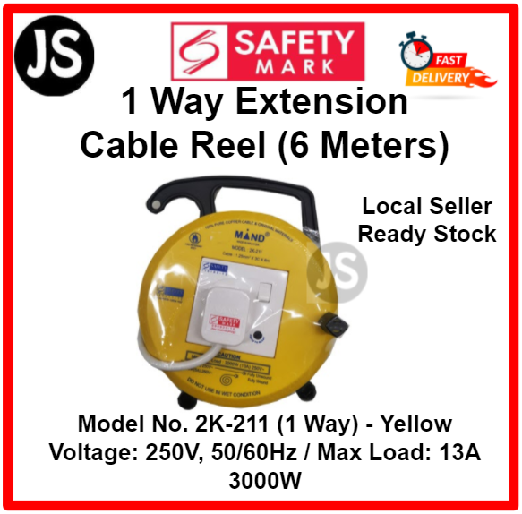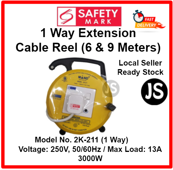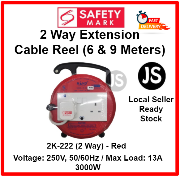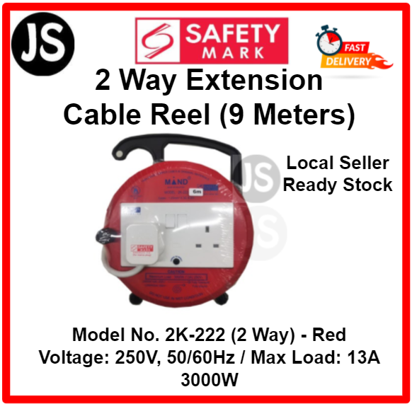 1 and 2 Way Extension Cable Reel (6 & 9 Meters) With Safety Mark
