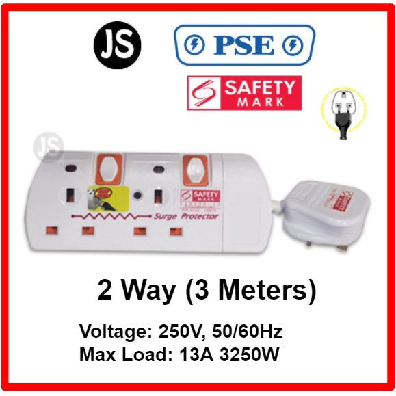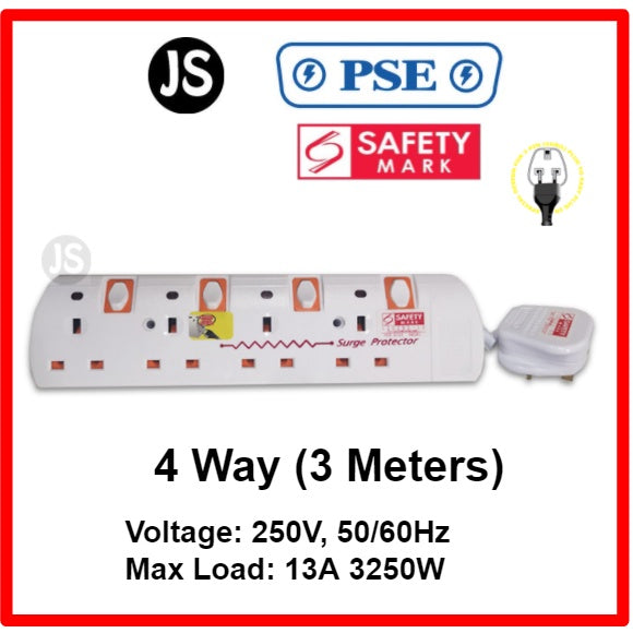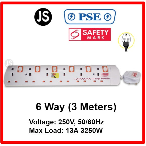 2/3/4/5/6 Way Orange Extension Socket (2, 3, 6 Meters) Surge Protection and Singapore Safety Mark