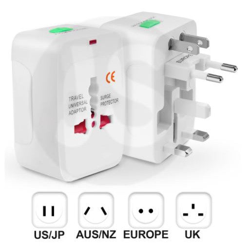 All in one universal travel adaptor without or with 2 usb & surge protector (White/Black)