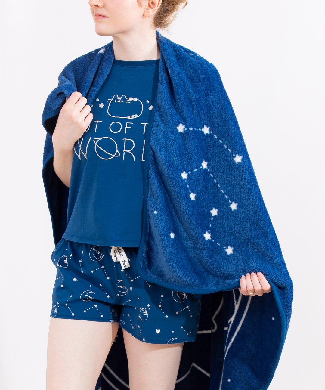 Bundle up for a cozy night under the stars with the super soft and fuzzy Pusheen Celestial Blanket!
