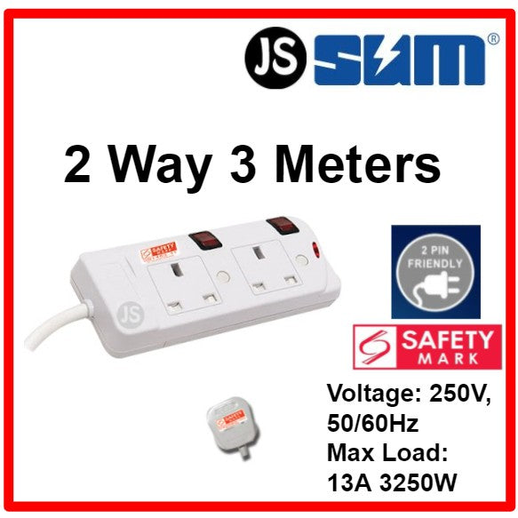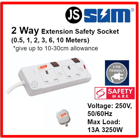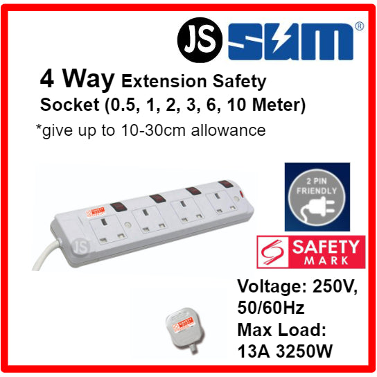 SUM 2/3/4/5 WAY Extension Socket (0.5, 1, 2, 3, 6, 10 Meters) With Singapore Safety Mark