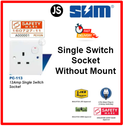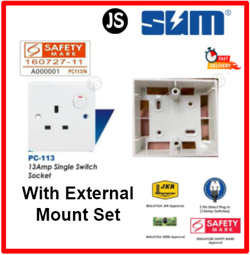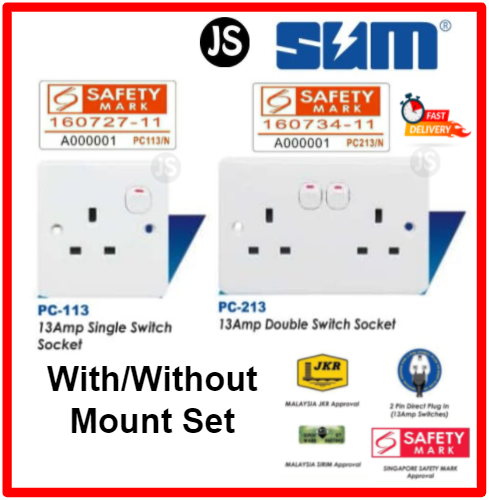 SUM 3-Pin 13A Single/Double Switch Wall Socket Outlet With/Without Mount Set (Small Button Series)