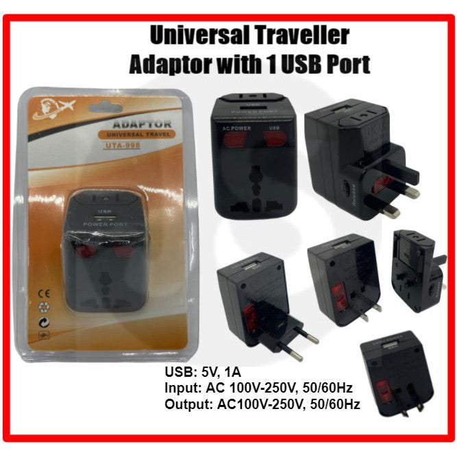 Univeral Traveller Adaptor with 1 USB Port